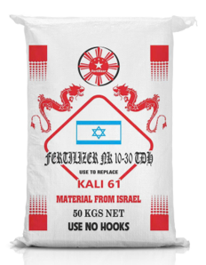 Đặc biệt sử dụng nguồn từ nguồn nguyên liệu Kali 61% và bổ sung các chất phụ gia giúp cây trồng phát triển vượt trội.
