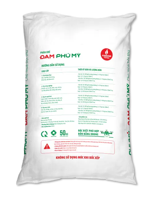 Đạm Phú Mỹ 46,3% là dòng phân đạm urê cao cấp, được sản xuất với công nghệ hiện đại, đảm bảo hàm lượng đạm cao và ổn định. Sản phẩm có dạng hạt trong, kích thước đồng đều, tan nhanh, giúp cung cấp dinh dưỡng kịp thời cho cây trồng, hạn chế thất thoát phân bón và nâng cao hiệu quả sử dụng.